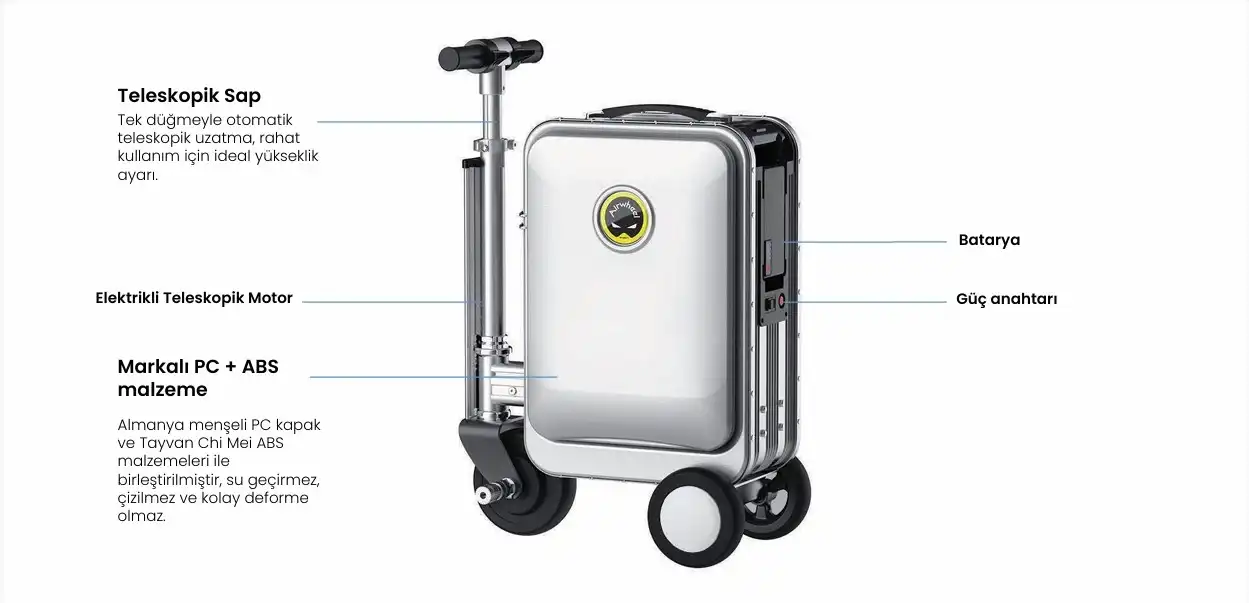Airwheel SE3S, sadece bir valiz değil, geleceğin seyahat deneyimini bugünden yaşamanızı sağlayan bir teknoloji harikasıdır. Akıllı