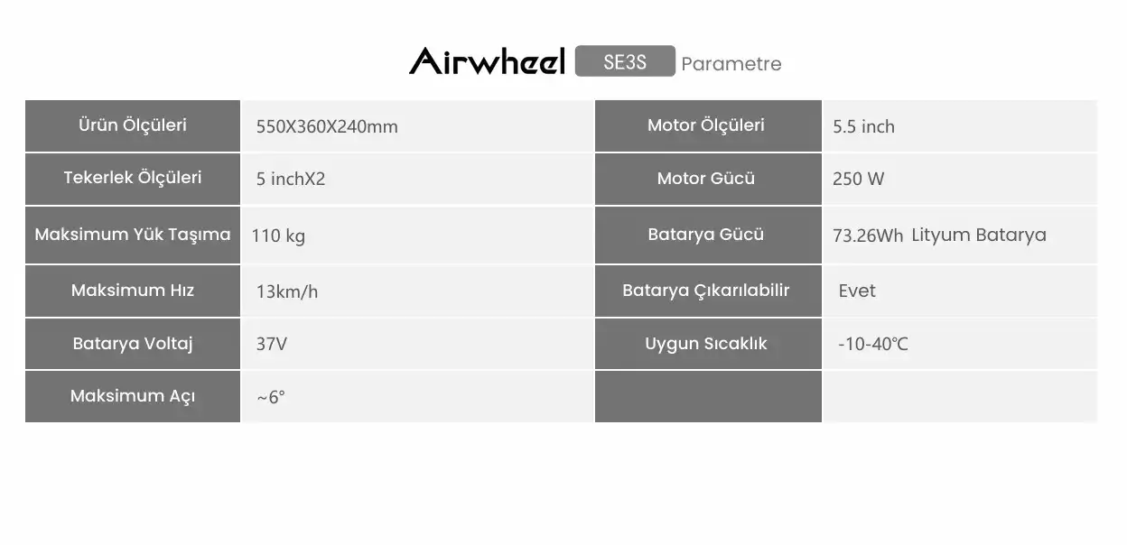 Güçlü ve Çıkarılabilir Batarya: Airwheel SE3S, 73.26Wh çıkarılabilir lityum batarya ile donatılmıştır. UN38.3 sertifikasını geçmiş olan
