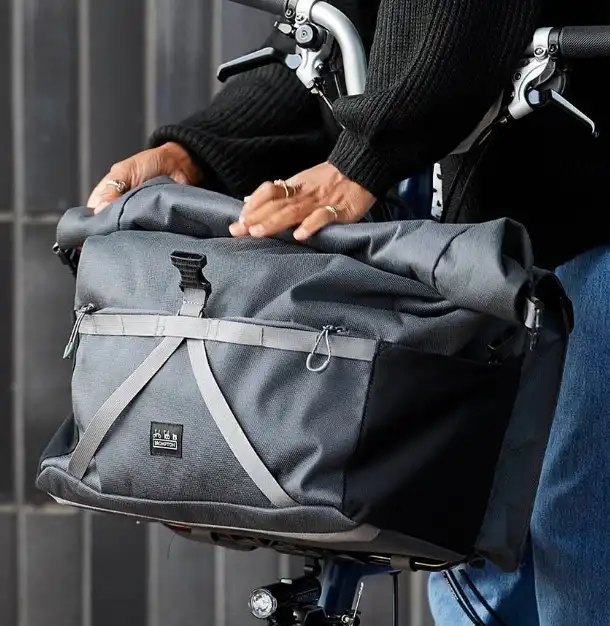 Brompton Borough Bag Large, markanın en yüksek kapasiteli taşıma çözümlerinden biri olarak, yoğun şehir hayatının ve uzun rotaların tüm ihtiyaçlarını karşılamak üzere tasarlanmıştır. "Rolltop" (rulo kapak) mekanizması sayesinde değişken yük miktarlarına göre hacmi ayarlanabilen bu model, gri tonlarındaki modern estetiğini üstün mühendislik detaylarıyla birleştirir.