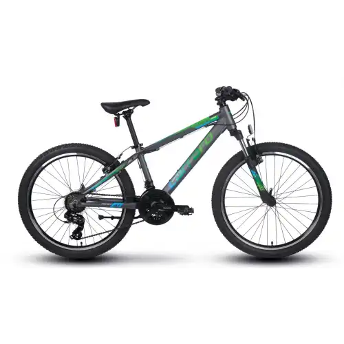 Mosso Wildfire, çocuklar için basit ve kullanıcı dostu bir vites sistemi sunar. Shimano SL-RS35 6x3 vites kolu, kolay vites geçişleri sağlarken, Shimano RD-TY200 arka attırıcı ve Shimano FD-TY500 ön attırıcı, sürüş sırasında hassas ve akıcı bir performans sunar. Shimano MF-TZ500-6 ruble (14-28T) ile zorlu parkurlar dahi rahatça aşılabilir. Alloy aynakol (42/34/24T) ise ideal pedal çevirme deneyimi sağlar.